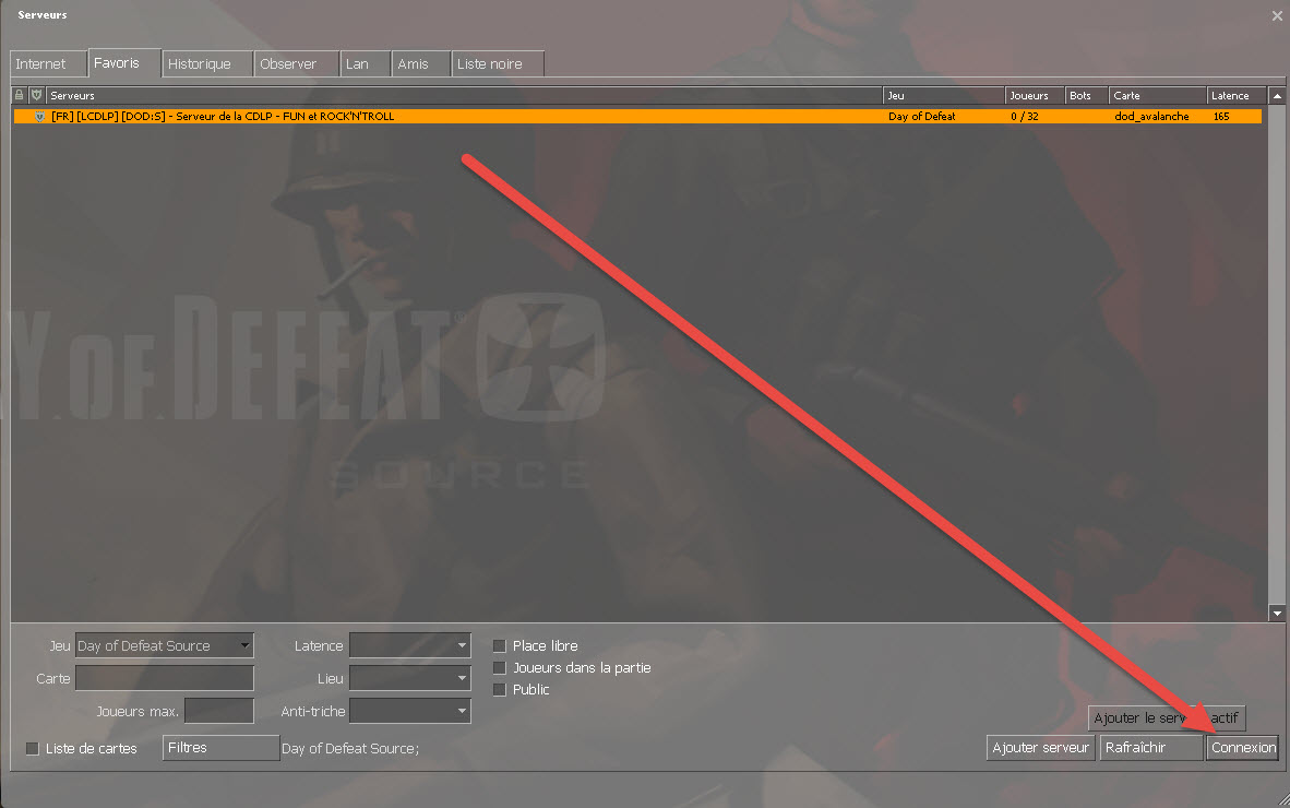 Le serveur est désormais dns vos favoris, il ne vous reste plus qu'à vous rendre directement dans le menu Favoris quand vous en aurez besoin et de cliquer sur Connexion afin de le rejoindre.