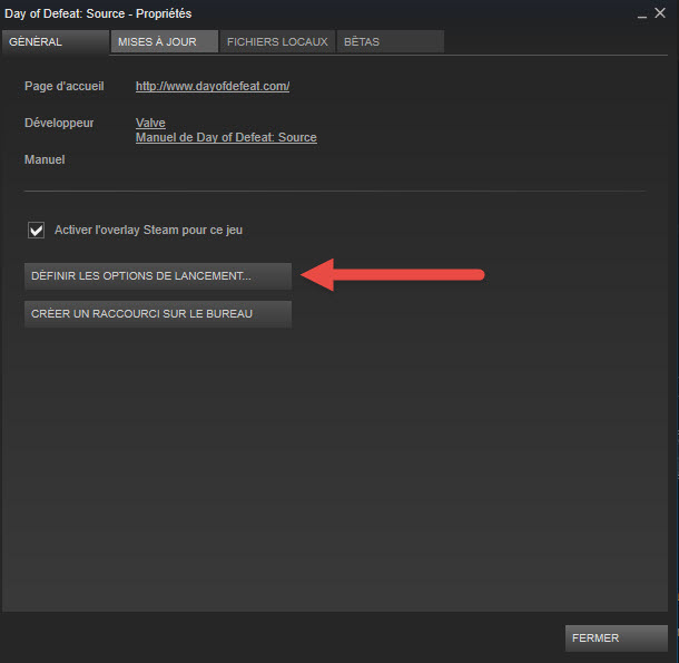 Tout d'abord, assurez-vous que votre jeu se lance avec la console. Pour cela, il suffit sous Steam de faire un clic droit sur votre jeu puis Propriétés.